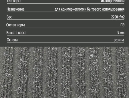 Иглопробивной способ производства. Материал ворса: полиэстер, устойчивый к механическим нагрузкам и истиранию;