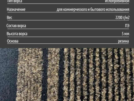 Иглопробивной способ производства. Материал ворса: полиэстер, устойчивый к механическим нагрузкам и истиранию;